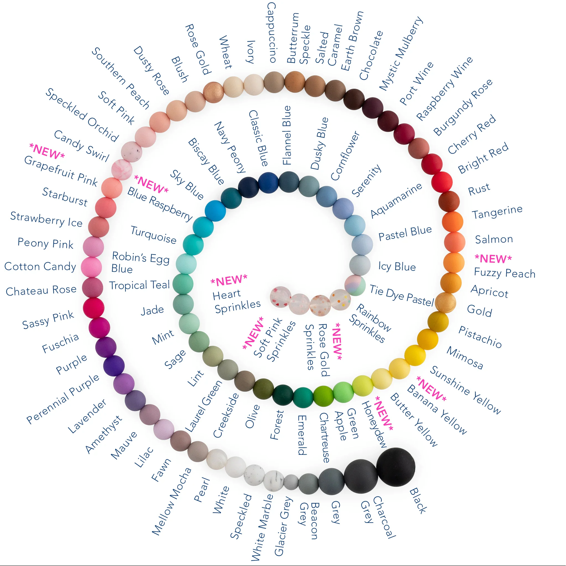 Regular wristlets have 16 beads; you may pick four colors.